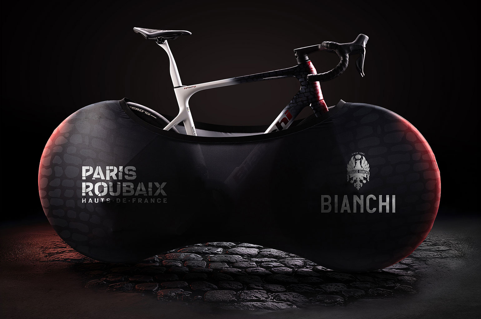 De Parijs-Roubaix Infinito komt met een speciale ‘Welcome kit’. Een doosje dat geheel in het Parijs-Roubaix thema is gemaakt. Het doosje bevat een kleine kassei, eigendomsbewijs en een transporthoes. Allemaal uiteraard compleet in het passende thema. Als laatste vind je in deze Welcome Kit een ‘certificaat van echtheid’ die persoonlijk is gesigneerd door Bianchi’s CEO: Alberto Cavaggioni.
