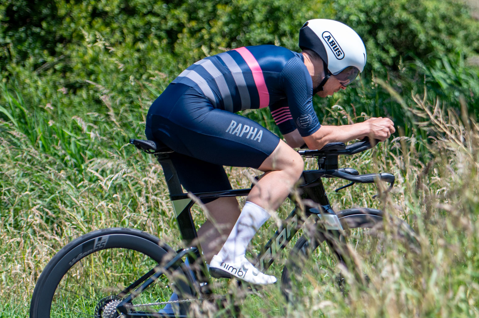 De helm zit comfortabel op m’n hoofd en hij voelt compact. De padding is niet heel dik, maar storend vind ik dat niet. Zoals gezegd is de helm zwaarder dan je gewend bent van een reguliere helm, maar ik merk dit niet wanneer ik op snelheid fiets. Als ik het vizier erop doe, merk je dat je een beetje ‘afgesloten’ wordt van het geluid van buiten. Niet gek natuurlijk, aangezien je oren bedekt zijn. Dit zorgt er ook voor dat je jezelf op een andere manier hoort als je praat. Gelukkig hoef je dat niet zoveel te doen tijdens een tijdrit, maar het is wel even een aparte gewaarwording de eerste keer.