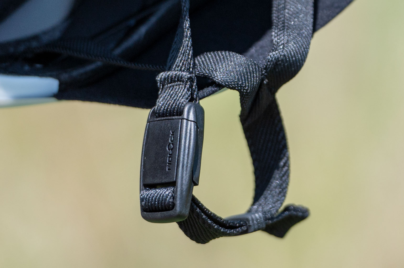 De sluiting van de helm is van Fidlock. Op de redactie zijn we het er allemaal over eens dat dit een erg fijn systeem is. Daarbij is het voor triatleten handig als je tijdens het lopen je helm nog dicht wil doen. Het kan met één hand en gaat sneller dan een gewone sluiting. De reden dat er bij gewone fietshelmen toch vaak voor een gewone sluiting wordt gekozen is het gewicht.