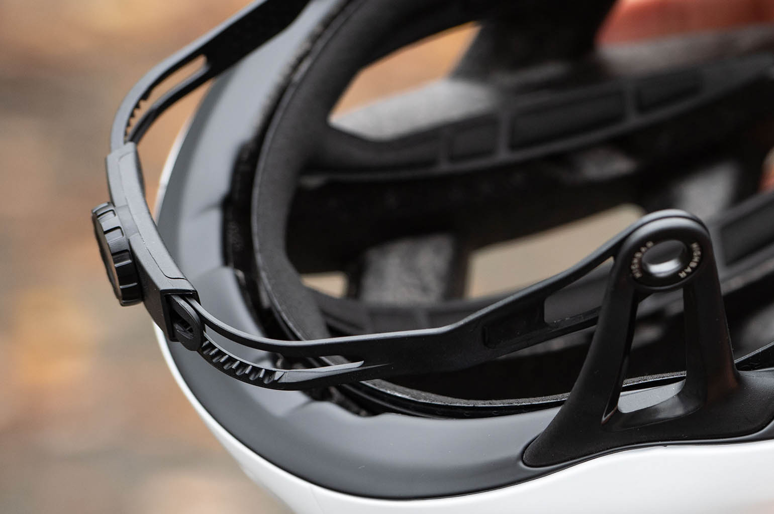 Maar dan het sluiten van de helm, dat is toch wel even wennen. De HighBar beugel zit bij het opdoen van de helm ter hoogte van je voorhoofd en deze kantel je naar beneden tot deze onder je kin zit. Het lijkt een beetje op het dichtklappen van een vizier bij een motorhelm, als je het mij vraagt. Onder je kin kan je met een retentie-wieltje de beugel strakker draaien, zodat hij niet onder je kin vandaan schiet bij een valpartij. Het kan met één hand, maar door het dunne kunststof gaat het met twee handen makkelijker.