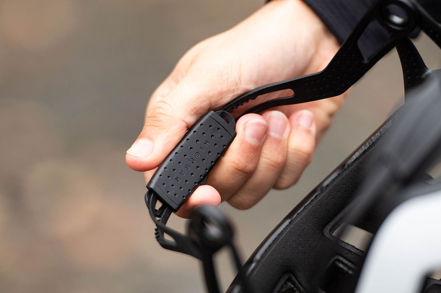 Waarmee Canyon het meest opzien baarde tijdens de lancering, is de HighBar sluiting. De twee merken hebben samen deze helm ontwikkeld. De HighBar sluiting valt natuurlijk meteen op, omdat deze anders is dan de gebruikelijke stoffen riempjes. Het is een kunststof ‘beugel’ die ter hoogte van je oor scharniert, zodat je deze “strap” omhoog of omlaag kan doen. Groot voordeel is dat je volgens Canyon de helm nu altijd goed dicht kan doen. En daarnaast is het ook nog eens meer aerodynamisch ten opzichte van wapperende riempjes.