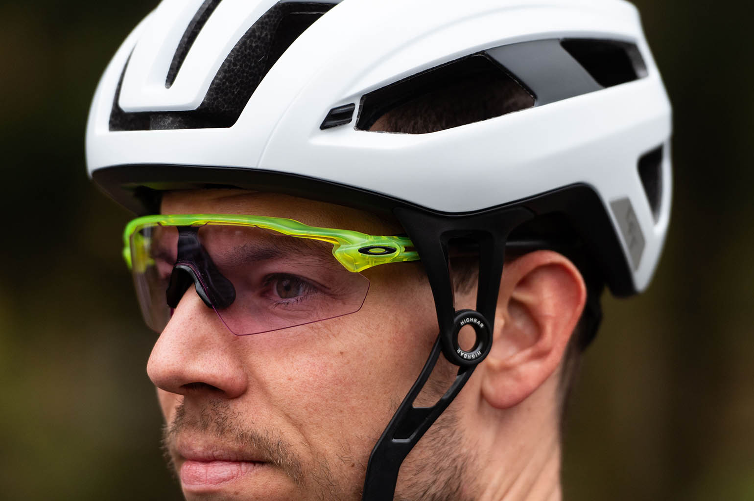 Zoals gezegd moet je als je je fietsbril opzet, deze aan de binnenkant van de sluiting van je helm steken. De HighBar heeft een lichte kromming naar buiten toe, bij de aansluiting op de helm. Hierdoor kunnen pootjes van de bril er prima onderdoor, mits je niet een bril hebt die te breed is. Wat dat betreft is dat wel handig om te proberen, want niet alle brillen uit mijn kast passen eronder. Smalle brillen zoals de Julbo Frequency, de Oakley Sutro (Lite) en Shimano Equinox gaan prima. De bredere Oakley Sphaera bijvoorbeeld, komt in mijn geval tegen het beugeltje van de HighBar sluiting.