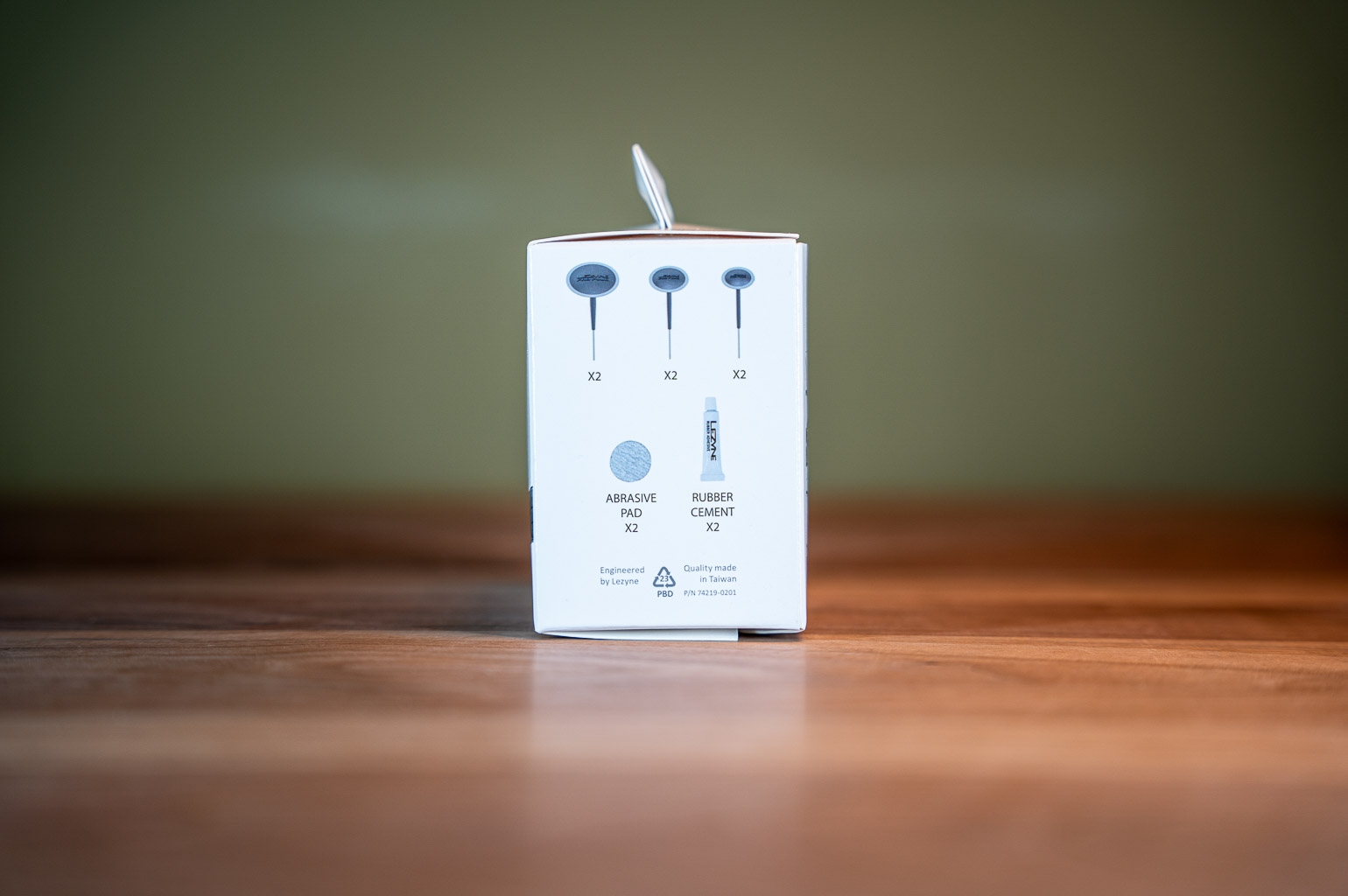 Lekrijden vindt niemand leuk, maar het is extra zuur als je daarmee ook een goede buitenband kunt weggooien als je zonder binnenband wilt rijden. Een tubeless-band van een beetje kwaliteit kost je al snel 50 euro. Daarom ben ik gaan zoeken naar manieren om je tubeless-band te repareren en kwam ik uit bij de Tubeless Pro Plugs van Lezyne. Zo’n set kost € 17,95.