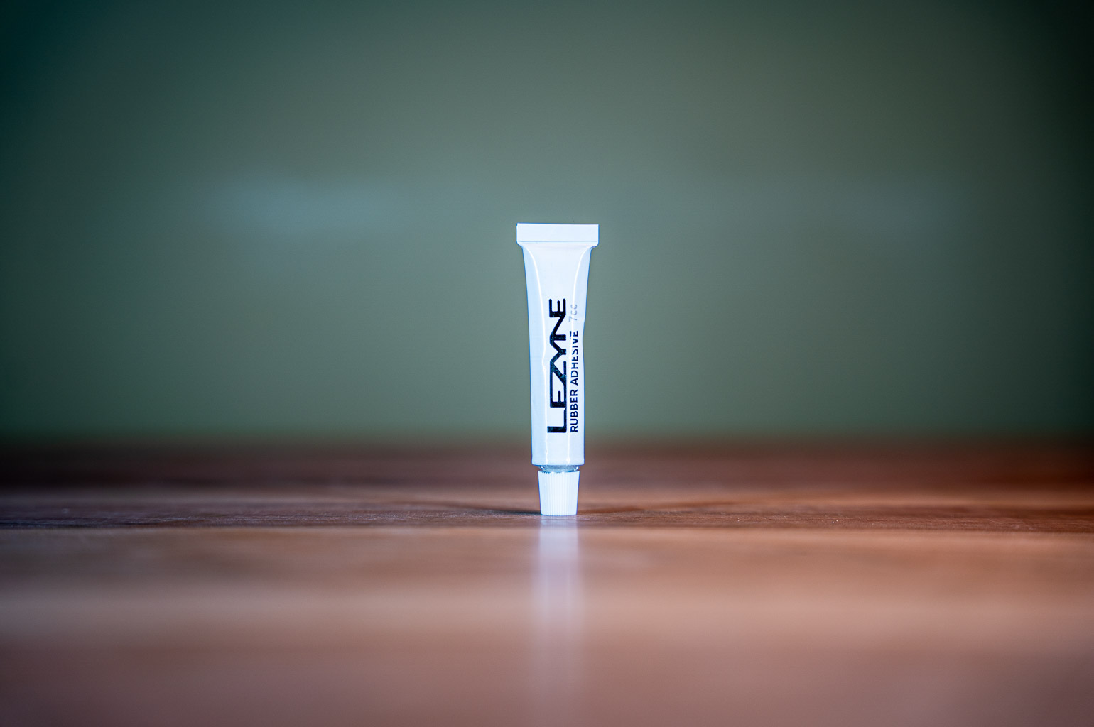 Lezyne is niet heel erg duidelijk over hoe lang je de lijm moet laten drogen. In de video op hun site lijkt het alsof je ‘m stevig kunt aandrukken en dat je dan klaar bent. Ik kies ervoor om er toch even een paar zware boeken op te laten rusten, zodat de lijm helemaal kan opdrogen. Als dat klaar is, knip ik aan de buitenkant de rubber spriet af en ben ik in feite klaar.