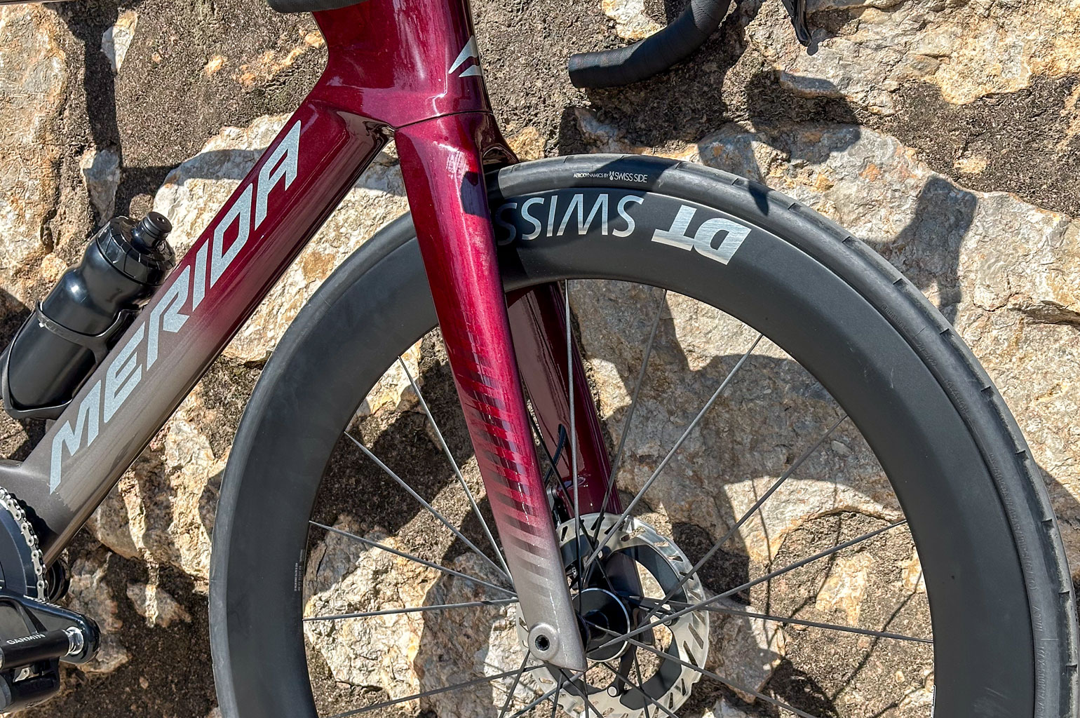 Opvallend is ook dat Merida de onderbuis smaller heeft gemaakt, daar waar een dikkere onderbuis in combinatie met bidons juist een betere airflow oplevert. Maar wanneer de bidons niet aanwezig zijn is de negatieve impact juist groter, waardoor dit voor de profs zelfs nadelig is als ze in de finale zonder bidons rijden. Reden voor Merida om te kiezen voor een smalle onderbuis. Voor profs en wielrenners die alleen voor het beste gaan, heeft Merida hiervoor aerodynamische bidons en houders ontwikkeld.