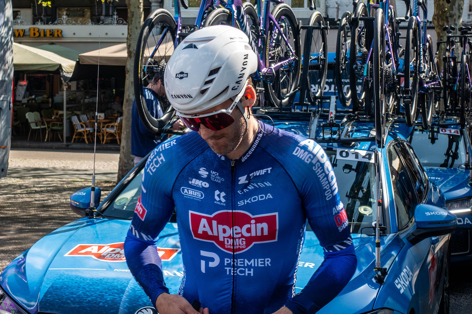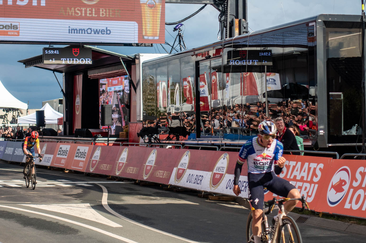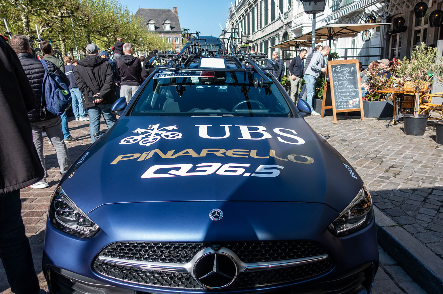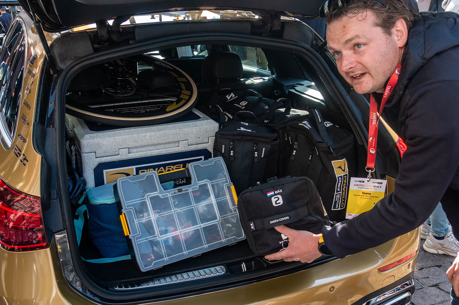 Bij aankomst in Maastricht stond de teambus al klaarDe helm werd eruit gehaald en er werd kort wat verteld over de technische details van de GameChanger 2.0Xabier Azparren wist hier nog niet dat hij bij de vroege vlucht zou horenDe teamwagens stonden al opgesteld met allerlei moois op het dakNiki kwam ook nog even buurtenNaast de GameChanger 2.0 zal deze AirBraker 2.0 ook in de Q36.5 teamkleuren voor de gewone sterveling te koop zijnPrecies! De brilpootjes netjes over de helmbandjesDe Mercedes ploegleidersauto van het Pinarello Q36.5 Pro Cycling Team. In totaal heeft het team 27 van deze en nog een maatje kleiner rondrijden. Niet allemaal tijdens de Amstel Gold Race natuurlijk. Ze staan trouwens 5 cm hoger op de wielen om te voorkomen dat ze steeds aan de grond komen tijdens de kasseienklassiekersToch weer een mooi gezicht, die glimmende fietsen met de mooie onderdelenXandro Meurisse fietste op 28 mm banden van VittoriaDie kleurstelling van het team is toch wel erg chic!Om uit te delen tijdens de koers, gelletjesReserve onderdelen, kleding en schoenen. Mocht er tijdens een crash de BOA-sluiting bijvoorbeeld afbreken, dan wordt er snel een reserve schoen geregeld. Hier die van Sjoerd Bax.Spiekbriefjes! Omdat de renners met verschillende bandendruk rondrijden, heeft de mechanieker de reserve banden hard opgepomp. Zo kan hij bij een wielwissel snel wat lucht aflaten tot de gewenste druk. Dit gaat sneller dan bijpompenHoe groot zo’n Mercedes ook is, het is altijd proppenMet een kleine ruimte overgelaten voor de mechaniekerKoffie is bij andere teams blijkbaar ook belangrijk, zoals hier bij Tudor pro cycling teamHé, nog een ABUS GameChanger 2.0 maar dan incognito. Alpecin-Premier Tech rijdt namelijk zonder ABUS brandingEn weer spiekbriefjes, deze keer voor de rennersEen kleurrijk bij team NSNDringen voor de startTerwijl de renners nog ontspannen staan te kletsenHoe kan het ook anders: wafelsOndertussen zijn de dames al onderweg. Hier de eerste doorkomst bij de finishHier zat Lorena Wiebes, in de NK trui, er nog bij. Later zou ze op de Cauberg moeten lossenEen na laatste doorkomst voor de damesterwijl Blasi, Niewiadoma en Vollering in die volgorde over de finishlijn kwamen, bollen hier Pluimers en Alvarado in het achterveld lekker uitZelfs de hamburgerbroodjes waren brandeddrukte in de VIP-tent waar het aan niets ontbrak, voor zowel eten als drinkenDan is het tijd voor de eerste doorkomst van de herenEn in de kopgroep de eerder genoemde Xabier Azparren van het Pinarello Q36.5 Pro Cycling TeamMaar Evenepoel was er niet gerust op en zette z’n collega’s op kop van het pelotonom uiteindelijk zelf er vandoor te gaan samen met Skjelmose, de winnaar van vorig jaarGezien vorig jaar toch verrassend dat Evenepoel het op de sprint liet aankomen, maar hij won hem met overmacht.En of hij blij was met deze overwinning!!!Cosnefroy maakt het podium compleetDe wasmachine staat al klaar voor alle vuile was. En wat zou er eigenlijk in die koelkast zitten?Dat valt een beetje tegen, niets spannends gewoon wat blikjes en herstel maaltijdenEn geen dag als gast zonder een leuke goodiebagDe complete gezellige groep van de dag waar ikzelf ook opsta, met petje! Thanks allemaal, superdag!