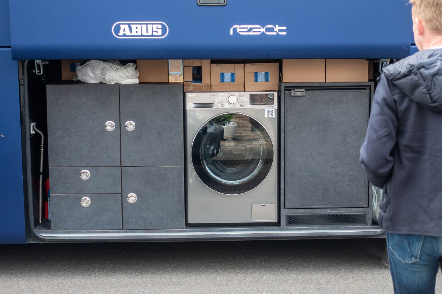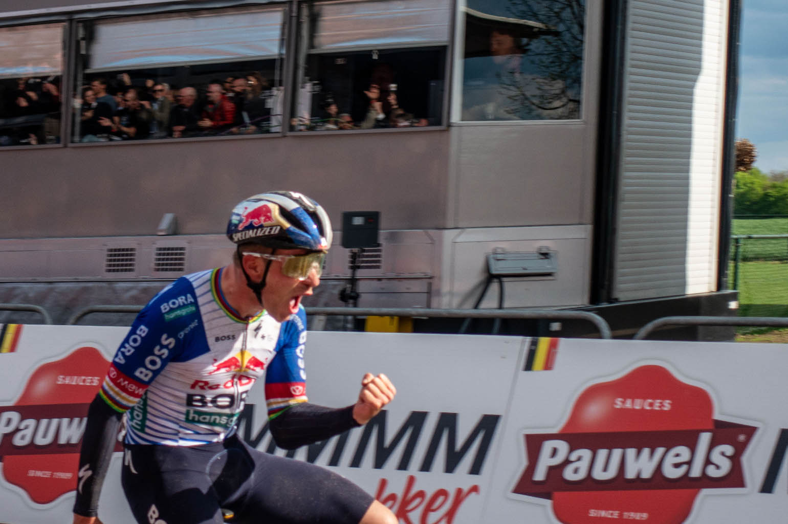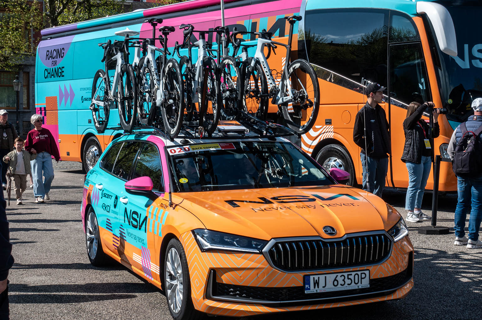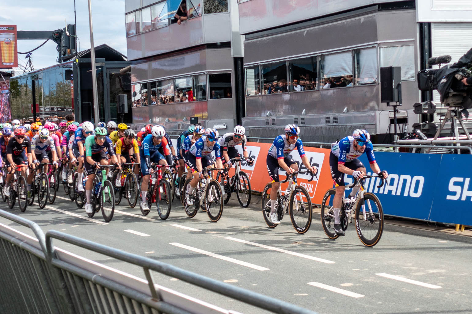 Bij aankomst in Maastricht stond de teambus al klaarDe helm werd eruit gehaald en er werd kort wat verteld over de technische details van de GameChanger 2.0Xabier Azparren wist hier nog niet dat hij bij de vroege vlucht zou horenDe teamwagens stonden al opgesteld met allerlei moois op het dakNiki kwam ook nog even buurtenNaast de GameChanger 2.0 zal deze AirBraker 2.0 ook in de Q36.5 teamkleuren voor de gewone sterveling te koop zijnPrecies! De brilpootjes netjes over de helmbandjesDe Mercedes ploegleidersauto van het Pinarello Q36.5 Pro Cycling Team. In totaal heeft het team 27 van deze en nog een maatje kleiner rondrijden. Niet allemaal tijdens de Amstel Gold Race natuurlijk. Ze staan trouwens 5 cm hoger op de wielen om te voorkomen dat ze steeds aan de grond komen tijdens de kasseienklassiekersToch weer een mooi gezicht, die glimmende fietsen met de mooie onderdelenXandro Meurisse fietste op 28 mm banden van VittoriaDie kleurstelling van het team is toch wel erg chic!Om uit te delen tijdens de koers, gelletjesReserve onderdelen, kleding en schoenen. Mocht er tijdens een crash de BOA-sluiting bijvoorbeeld afbreken, dan wordt er snel een reserve schoen geregeld. Hier die van Sjoerd Bax.Spiekbriefjes! Omdat de renners met verschillende bandendruk rondrijden, heeft de mechanieker de reserve banden hard opgepomp. Zo kan hij bij een wielwissel snel wat lucht aflaten tot de gewenste druk. Dit gaat sneller dan bijpompenHoe groot zo’n Mercedes ook is, het is altijd proppenMet een kleine ruimte overgelaten voor de mechaniekerKoffie is bij andere teams blijkbaar ook belangrijk, zoals hier bij Tudor pro cycling teamHé, nog een ABUS GameChanger 2.0 maar dan incognito. Alpecin-Premier Tech rijdt namelijk zonder ABUS brandingEn weer spiekbriefjes, deze keer voor de rennersEen kleurrijk bij team NSNDringen voor de startTerwijl de renners nog ontspannen staan te kletsenHoe kan het ook anders: wafelsOndertussen zijn de dames al onderweg. Hier de eerste doorkomst bij de finishHier zat Lorena Wiebes, in de NK trui, er nog bij. Later zou ze op de Cauberg moeten lossenEen na laatste doorkomst voor de damesterwijl Blasi, Niewiadoma en Vollering in die volgorde over de finishlijn kwamen, bollen hier Pluimers en Alvarado in het achterveld lekker uitZelfs de hamburgerbroodjes waren brandeddrukte in de VIP-tent waar het aan niets ontbrak, voor zowel eten als drinkenDan is het tijd voor de eerste doorkomst van de herenEn in de kopgroep de eerder genoemde Xabier Azparren van het Pinarello Q36.5 Pro Cycling TeamMaar Evenepoel was er niet gerust op en zette z’n collega’s op kop van het pelotonom uiteindelijk zelf er vandoor te gaan samen met Skjelmose, de winnaar van vorig jaarGezien vorig jaar toch verrassend dat Evenepoel het op de sprint liet aankomen, maar hij won hem met overmacht.En of hij blij was met deze overwinning!!!Cosnefroy maakt het podium compleetDe wasmachine staat al klaar voor alle vuile was. En wat zou er eigenlijk in die koelkast zitten?Dat valt een beetje tegen, niets spannends gewoon wat blikjes en herstel maaltijdenEn geen dag als gast zonder een leuke goodiebagDe complete gezellige groep van de dag waar ikzelf ook opsta, met petje! Thanks allemaal, superdag!