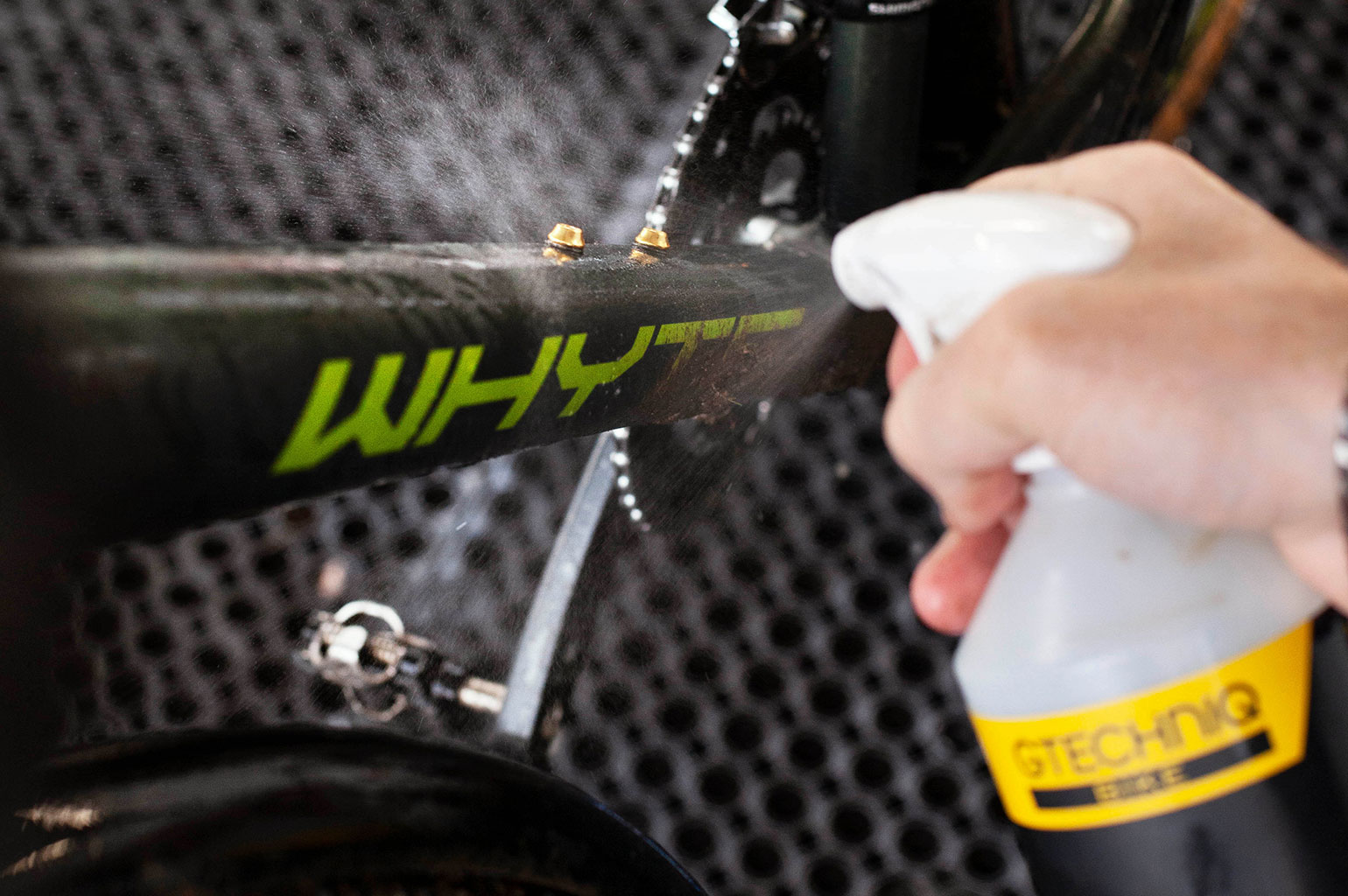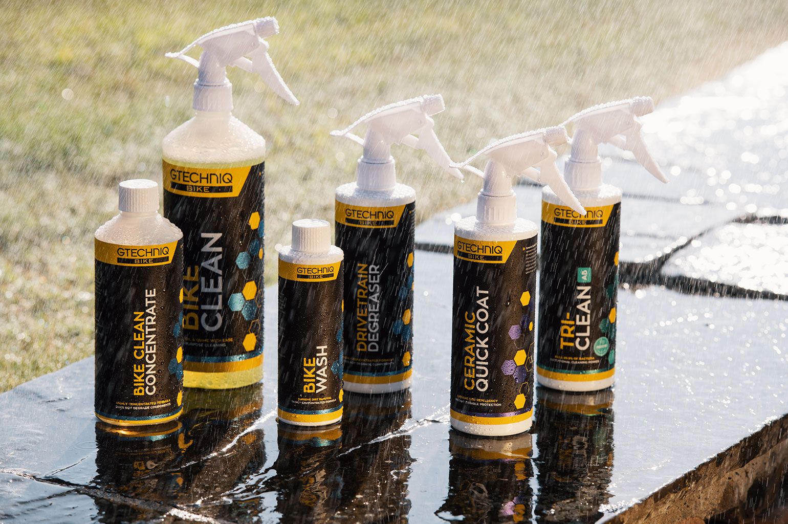 Voor de bike producten zijn ze gaan samenwerken met verdeler Carbonbike. Dus binnenkort zullen de verschillende producten ook in de winkels in de buurt te vinden zijn. Wat ze goed doen, is dat de collectie niet complex is door een teveel aan producten die elkaar allemaal overlappen. Het doel van Gtechniq is dat je je fiets schoon kan maken en dat je kan zorgen voor extra bescherming. Voor het schoonmaken hebben ze een Bike Wash die je gebruikt als shampoo tijdens het wassen.