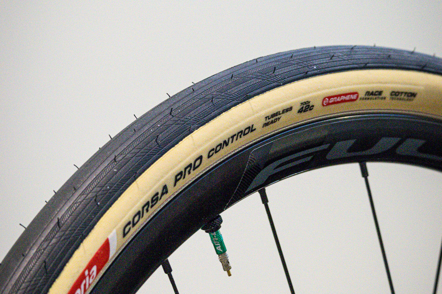 Nu al beschikbaar is een andere innovatie van Vittoria. Zij breidden hun bandenaanbod in de Corsa PRO Control serie uit met een variant van 38 mm en 42 mm. Deze Control serie – die boven de Rubino gepositioneerd is – heeft van de Pro Corsa serie de hoogste lekbestendigheid. Door de breedte lijkt deze band ideaal om onder je gravelfiets te monteren. Dit omdat de meeste voorvorken en frames van een racefiets deze breedtes nu nog niet toelaten. De trend is echter wel dat het zich die kant op gaat ontwikkelen.