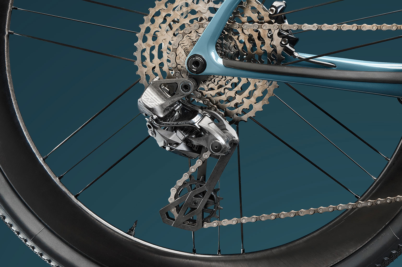 De X achterderailleur heeft een iets langere kooi en kan maximaal een cassette met 48t aan. Hij is compatibel met UDH maar ook met de normale derailleurhangers. Specifiek voor gravel zijn er twee cassettes. een 9-42 en een 10-48. Ze passen op de N3W body. Ook heeft de derailleur een zogenoemde Nano-clutch die ervoor zorgt dat de kooi niet gaat klapperen bij harde klappen.