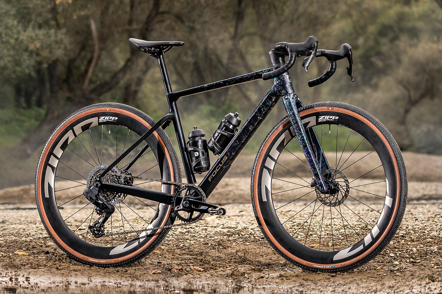 Eerst over de Focus Atlas 8 serie gemaakt van carbon. Het topmodel, de 8.9 ziet er logischerwijs ook het dikst uit. Maar de afmontage valt eigenlijk wel mee. De groepset is de Sram Rival XPLR, die onder de Red en Force groep zit. Nog steeds een fijne groepset maar geen topgroep. De hoge carbon wielen zijn de Zipp 303 XPLR S wielen die de fiets de dikke uitstraling geven. Voordeel van deze afmontage is dat de prijs voor dit topmodel van de Atlas serie redelijk bescheiden is gebleven met € 5.299,-. Elke 8.9 heeft een uniek met de hand bewerkte paint. Toch een leuk detail. Het gewicht van deze uitvoering is 8,6 kg.