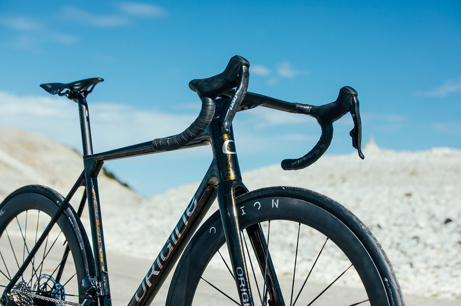 Het dingetje bij een configurator is, dat ik er zelf altijd uren mee kan spelen. En ook nu kon ik het niet laten bij de nieuwe Origine Axxome RR. Deze fiets is verkrijgbaar vanaf ongeveer € 8000,- in combinatie met een Shimano Ultegra Di2-groepset en Prymahl carbonwielen. Ik zeg bewust ongeveer, omdat de opties in de configurator enorm uitgebreid zijn. Als je kiest voor een fiets zonder pedalen en bidonhouders kan je net onder de € 8000,- uitkomen. Het topmodel met SRAM Red AXS en DT-Swiss-wielen zal rond de € 11.000,- kosten. Kies je bij dit model voor de eigen Prymahl-wielen van Origine kan dit overigens ook onder de € 10.000,- uitkomen. Het is maar net welke keuzes je maakt.
