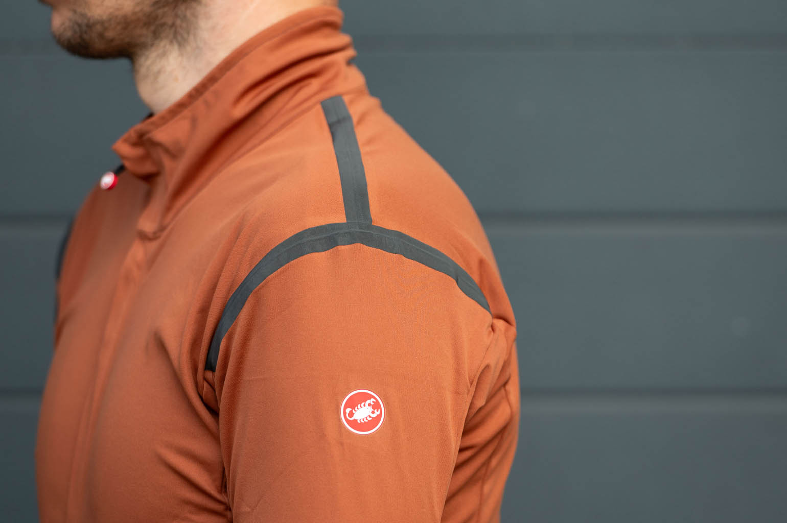 Deze Perfetto RoS 3 is de doorontwikkelde versie van de Castelli Perfetto RoS 2, die ik eerder al testte. Technisch gezien is het jasje volledig opnieuw ontwikkeld maar de looks zijn nog lekker herkenbaar als de Perfetto. Zo heeft de Perfetto RoS 3 ook een rits die je van boven en beneden kan openen en zit er een flap die over de rits valt om de wind daartegen te houden. Bij je borstkas vind je links en rechts een rits die je kan openen voor extra ventilatie, en ook de voering bij de kraag van het jasje is hetzelfde gebleven.