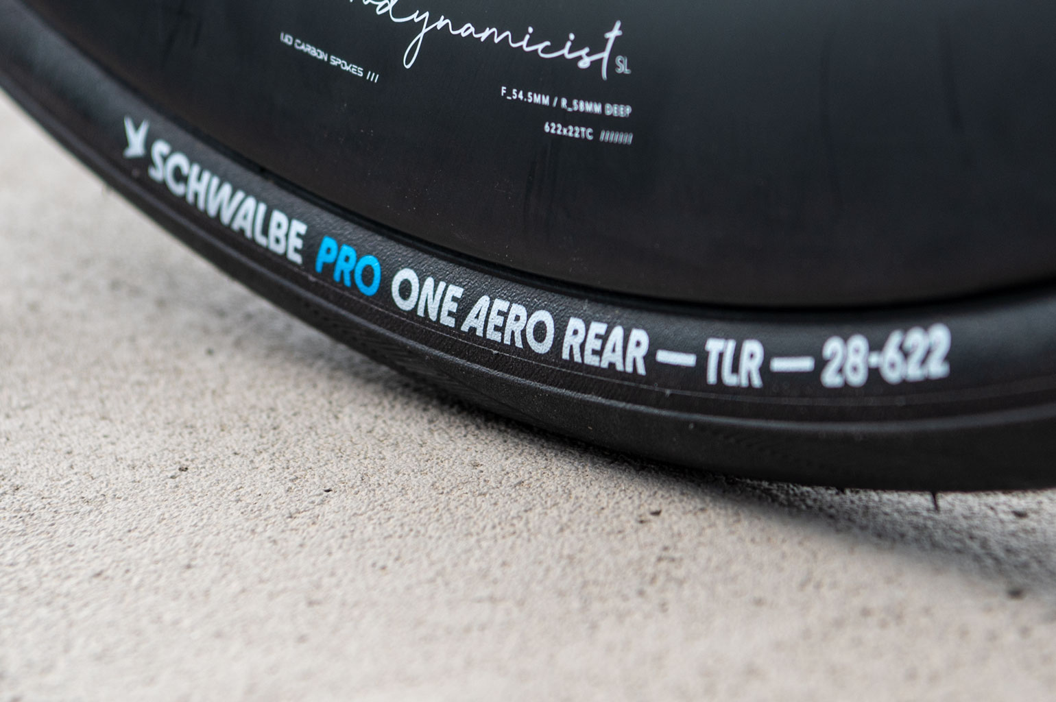 Ik monteer de banden op de Hunt Aerodynamicist wielen met een binnenbreedte van 22mm. Ook na het monteren is er op het oog geen verschil zichtbaar, totdat ik de schuifmaat erbij pak. De voorband meet 28mm breed daar waar de achterband 29mm breed is. Het verschil in de hoogte van de band is iets groter, want de voorband meet 29mm terwijl dat bij de achterband 26mm is. Kortom, een smalle en hogere voorband ten opzichte van een lage maar bredere achterband. Volgens windtunnel tests van Schwalbe zal deze band daarmee 20% minder luchtweerstand hebben dan de Pro One TT banden.