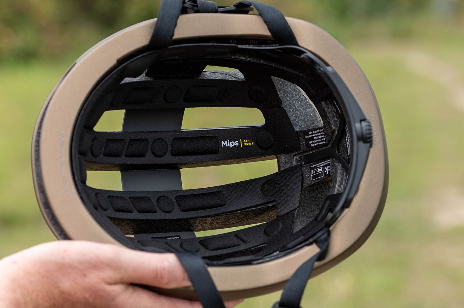 Even wat feitjes over deze Kudo helm. Aan de binnenkant zit het MIPS Air Node systeem. Dit is de lichtgewicht versie van de MIPS bescherming die extra beschermt tegen schuine impact. Het vermindert de rotatiekracht op je hoofd tijdens een val, zoals dat zo mooi heet. Aan de achterkant zit een draaiknop om de helm goed om je hoofd vast te zetten. Dit systeem kan je aan de achterkant ook in hoogte verstellen. Om de bandjes om je oren te leiden, zit er onder de oren een kunststof driehoekig stukje. De sluiting onder je kin is een gewone kliksluiting zoals je die gewend bent bij veel fietshelmen. Er zijn in totaal 16 ventilatiegaten waardoor dit volgens Fizik een helm moet zijn voor de warmere temperaturen.