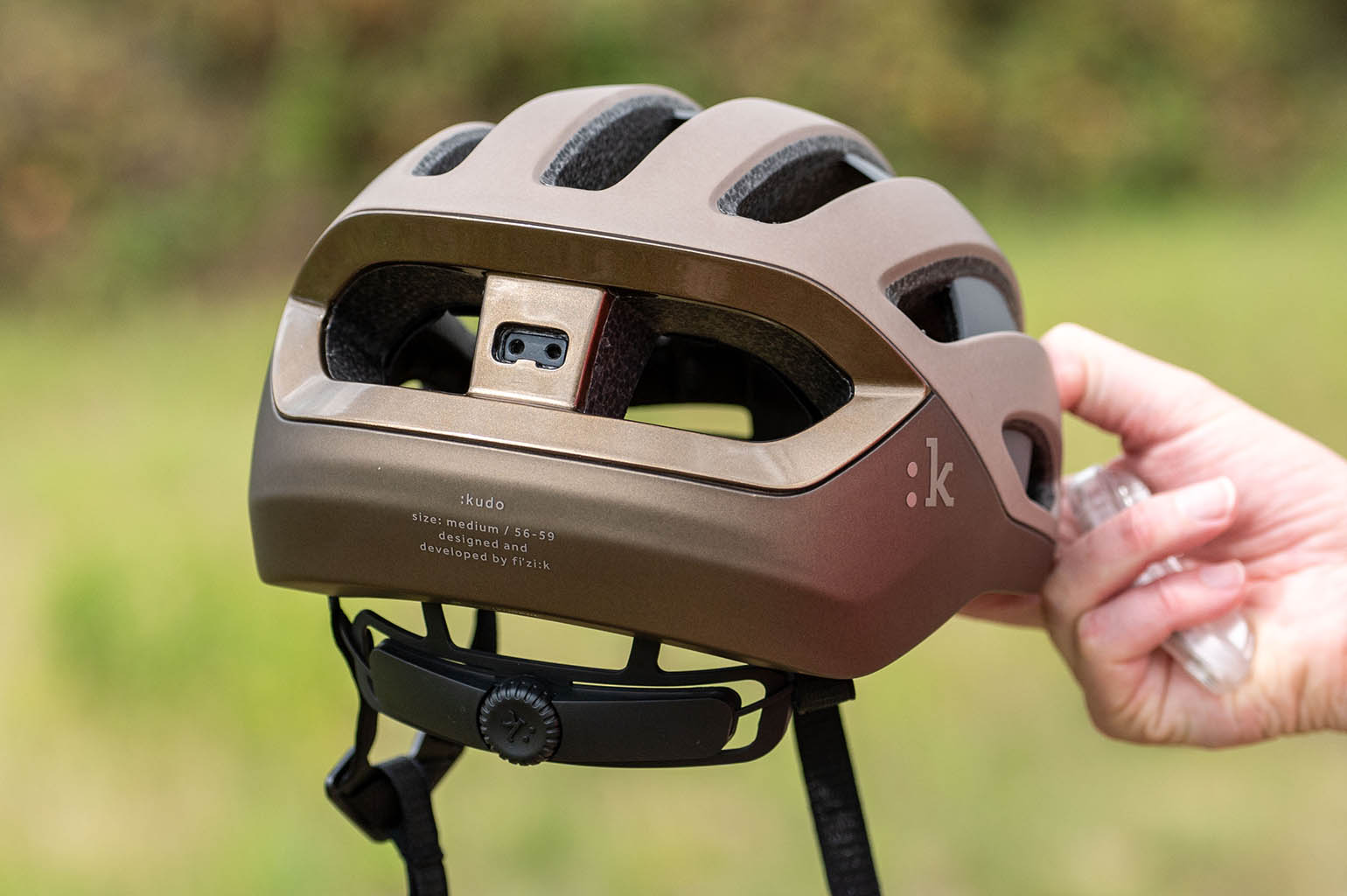 De afgelopen maanden was het voor mij tijd om met de nieuwe Fizik Kudo helm te fietsen. In een goeie kleur ook nog eens. Bronze noemen ze deze kleur. Begin dit jaar kwam Fizik met een hele range aan fietshelmen waarvan deze Kudo de allround helm is. Volgens Fizik geschikt voor de weg, gravel, maar ook voor op de cross country mountainbike. De extra opvallende feature heb je wellicht al gezien aan de achterkant: het achterlicht.