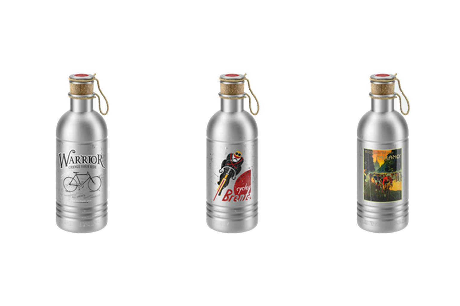 Om het Eroica-gevoel kracht bij te zetten is er de aluminium drinkfles die voorzien is van een klassieke kurksluiting, net als toen. Zelfs het touwtje dat de dop aan de fles houdt, is overgenomen van de ontwerpen uit die tijd. Naast de standaard opdruk van deze aluminium drinkfles zijn er ook uitvoeringen met tof artwork. Natuurlijk ook geheel in stijl: helemaal retro. Deze drinkfles weegt 120 gram en heeft een inhoud van 600 ml.