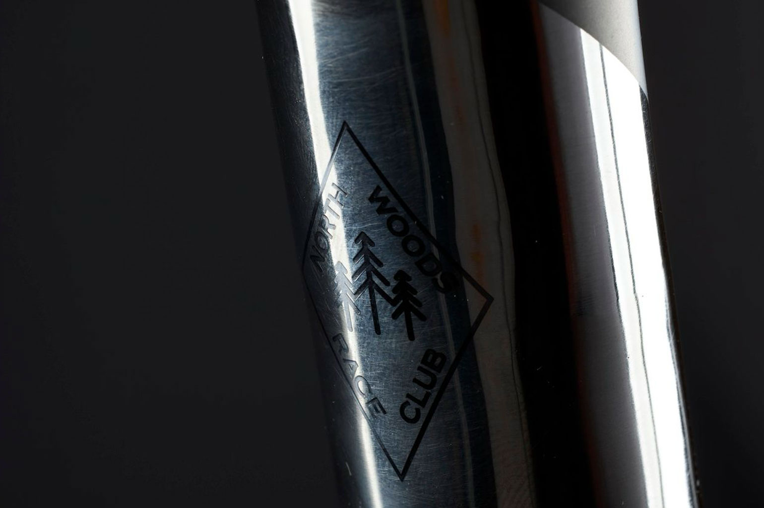 Banden tot 32 mm passen in het frame. Uiteraard is de fiets geschikt voor schijfremmen en hij heeft een UDH voor de derailleur. Het balhoofd en het zadelpen gedeelte zijn 3D geprint. Ook de UDH is 3D geprint. Er worden maximaal 100 frames van gemaakt. Het logootje met de tekst: North Woods Race Club, linkt ook weer naar het Beierse Woud. Want vroeger heette dit het Nordwald.