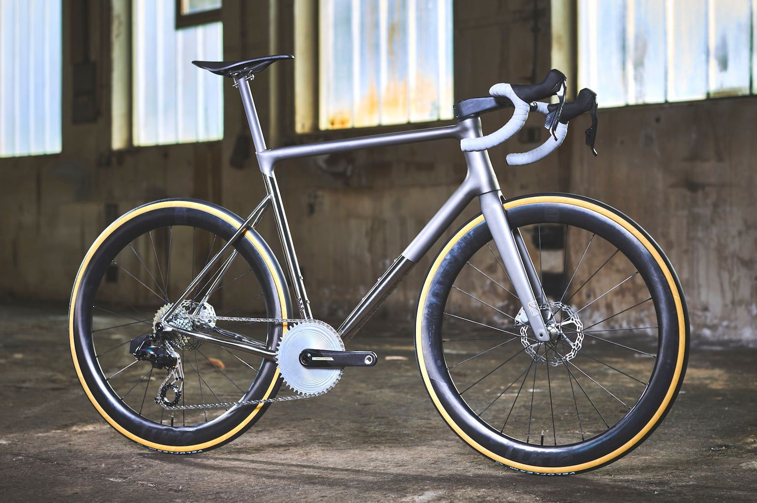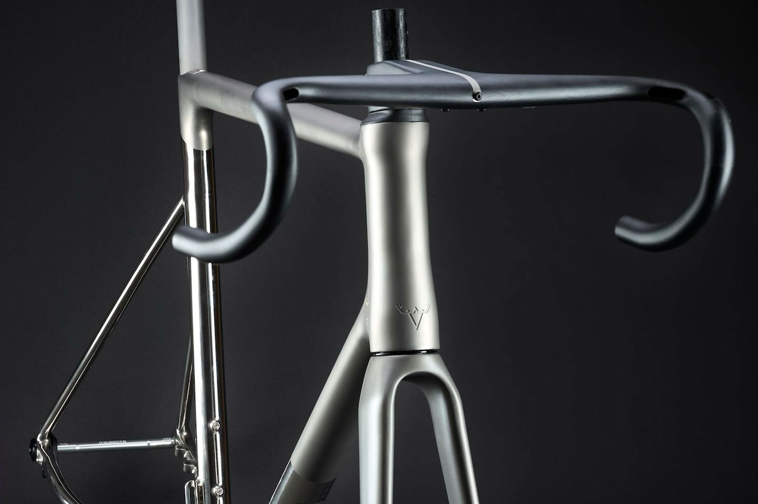 Deze Attaquer is de echte racer van het merk en is dus ook van titanium. Je kan het frame al vooraf bestellen want rond deze tijd gaan ze beginnen met de productie. Om eens met de prijs te beginnen, € 4.200,- voor een frameset. Dat is dan het frame en de voorvork. De zadelpen of het stuur hoort daar niet bij. De voorvork is van carbon en krijgt een Cerakote behandeling waardoor hij een specifieke look krijgt, maar ook tegen een stootje moet kunnen.