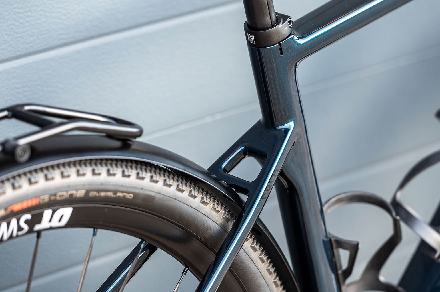 Ik heb zoals gezegd regelmatig even een extra rondje gemaakt. Niet alleen op asfalt maar ook op gravel om te zien hoe hij zich daar gedraagt. Want de Canyon Grizl is van nature een gravelbike. Je kan er prima mee op gravel rijden. De banden lenen zich er prima voor. Bij modder zou je misschien iets meer profiel willen, maar als je een beetje technisch kan sturen, red je je wel met deze banden. Dikke modder is iets waar de spatborden niet erg vrolijk van worden. Het gaat snel tussen de band en het spatbord zitten. Dus lichte gravelpaden rijden; prima. Ga je wat heftigere paden rijden, dan moet je of voorzichtiger doen of gewoon een Grizl gravelbike zonder spatborden nemen. In het Fizik zadel zit nog een handig regenafvoergaatje, wat zorgt dat er geen water in blijft staan.
